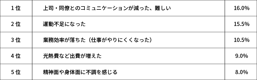 一方で、ネガティブな変化についての回答は下記のようなものでした。